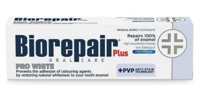 20% složky MicroRepair opravuje zubní sklovinu, neboli penetruje do microtrhlin ve sklovině a navázáním na její strukturu je opravuje. BioRepair Plus Pro White je účinný proti zubnímu plaku, kazu i zubnímu kameni. PVP polymer vniká do skvrn a nežádoucího zabarvení, tím je odstrani a zároveň brání vzniku nových.