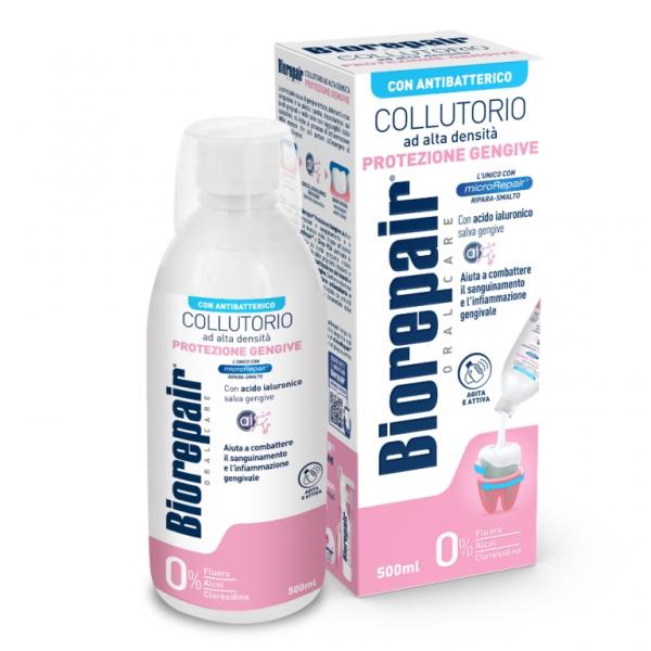 Ústní voda BioRepair s patentovanou formulí MicroRepair aktivně působí v kombinaci antibakteriálních účinků a to bez fluoridů, alkoholu a chlorhexidinu proti tvorbě zubního plaku. Aktivní látkou je kyselina hyaluronová, která podporuje hojení a posiluje tkáně svými hydratačními a ochranými schopnostmi. Složka Zinc PCA zabraňuje tvorbě zubního plaku a zubního kamene bez použití chlorhexidinu, vitamíny A a E zajištují antioxidační funkci pro sliznici a ztahující a uklidňující účinky dodává výtažek z bylin a to měsíčku, vilínu a spiruliny. Částice MicroRepair snadno pronikají do mikrotrhlin a vyšší husota a přilnavost zaištuí vyšší léčivý účinek