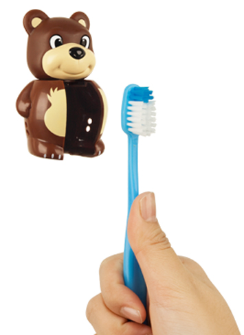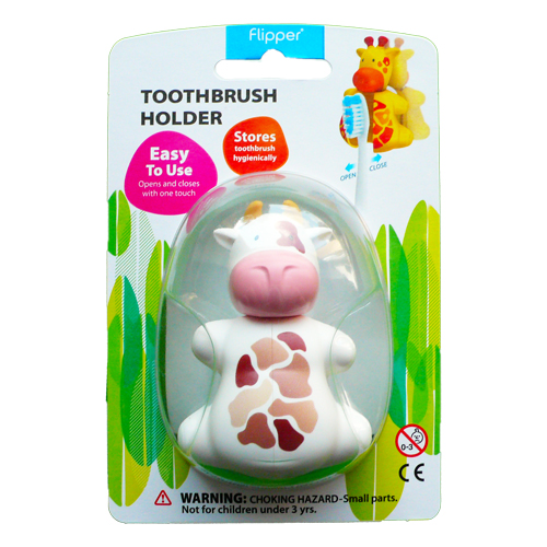 Antibakteriální kryt na zubní kartáček pro děti ve tvaru kravičky. Originální patentovaný mechanismus - otevírání a zavírání jedním dotykem. Jednoduché přichycení na dlaždičky, sklo nebo zrcadlo pomocí dvou přísavek. Hračku - antibakteriální kryt je možné použít při cestách.