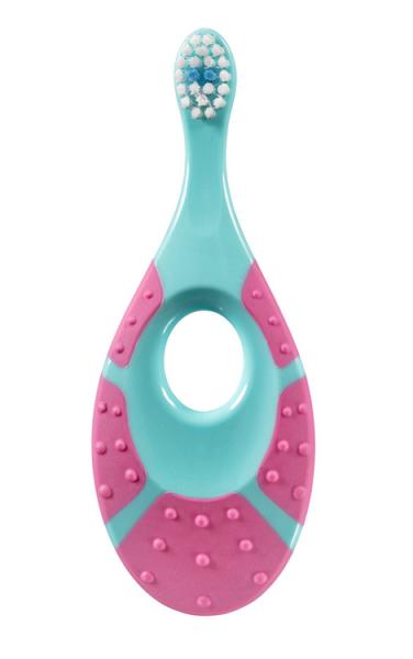 E-SHOPMalá hlavička, měkká vlákna, krátký krk zabraňuje hlubšímu vložení kartáčku do úst. Pohodlné držátko pro miminko, sloužící zároveň jako kousátko. Pro děti do 2 let