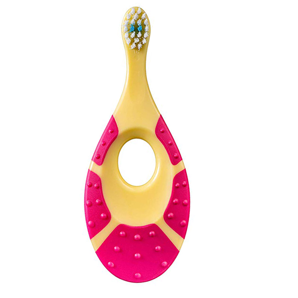 E-SHOPMalá hlavička, měkká vlákna, krátký krk zabraňuje hlubšímu vložení kartáčku do úst. Pohodlné držátko pro miminko, sloužící zároveň jako kousátko. Pro děti do 2 let