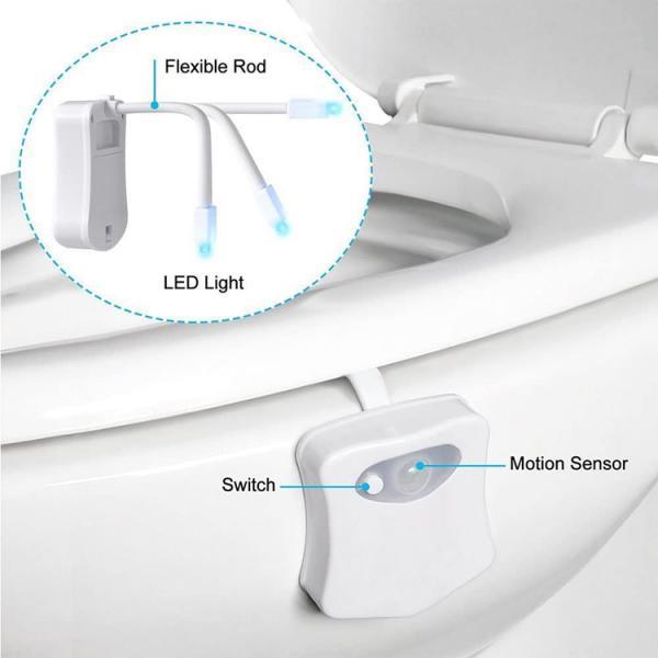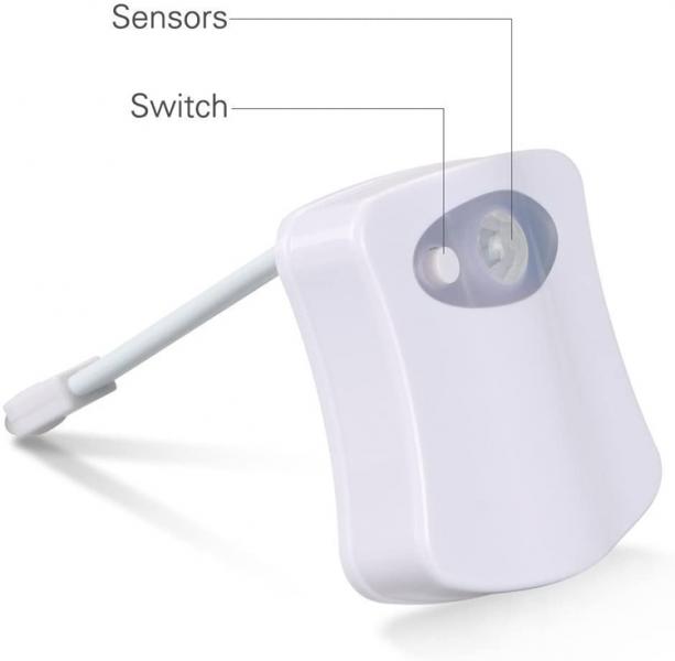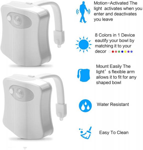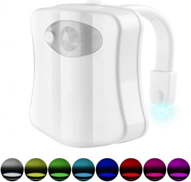 E-SHOP8 volitelných barev, 2 režimy, senzor pohybu, automatické vypnutí po 2 minutách. Vhodný na každou toaletu, zábavný pro děti. Praktický - dostačující osvětlení toalety v noci.
