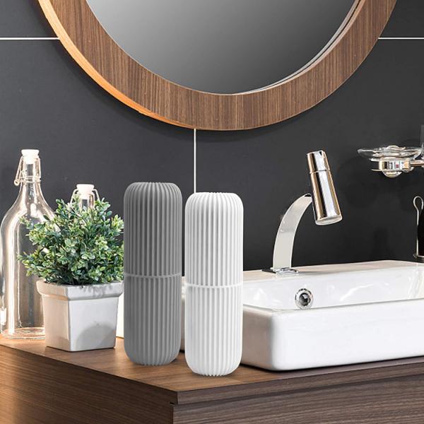 Cestovní pouzdro na zubní kartáčky je z ekologického polypropylenu v potravinářské kvalitě, který je netoxický a bez chuti. Odolné vůči vysokým teplotám, lehké a s dlouhou životností, vhodné pro dospělé a děti. Multifunkční pouzdru např. na zubní kartáčky, zubní pastu, kosmetiku, zubní nitě a dokonce i malé ručníky. Lze jej také rozložit na dva kelímky např. na ústní vodu.