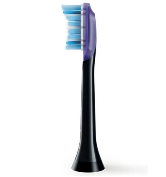 Hlavice se soft vlákny z nylonu se snadno nasadí i sundá z těla kartáčku. Pevně drží a umožňuje jednoduchou údržbu i péči. Je bezpečná pro zuby i dásně. Modrá indikační vlákna blednutím indikují potřebu výměny.