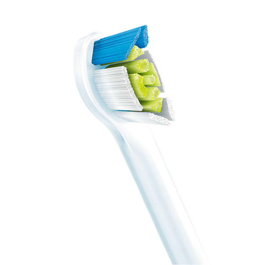 Hlavice se soft vlákny z nylonu se snadno nasadí i sundá z těla kartáčku. Pevně drží a umožňuje jednoduchou údržbu i péči. Je bezpečná pro zuby i dásně. Modrá indikační vlákna blednutím indikují potřebu výměny.