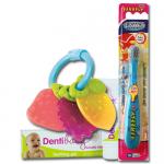 SADA PRO PRVNÍ ZOUBKY PRO KLUKY - Masážní kousátko + Zubní kartáček Firefly Barny Musical + Zubní gel Dentibaby