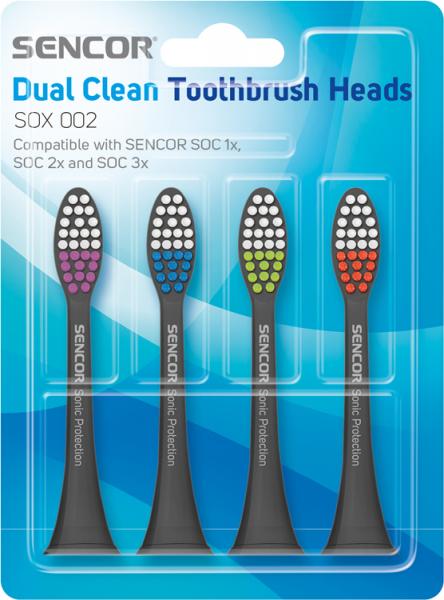 Náhradní hlavice Sencor Dual Clean SOX 002 v černé barvě pro elektrické kartáčky Sencor poskytnou komfort při čištění. Zároveň rozpoznáte jednotlivé hlavice od sebe pomocí svazku barevných vláken a nepotřebujete tudíž rozlišovací kroužky.