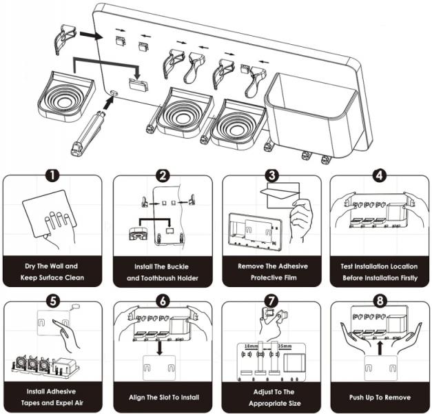 Perfektní velikost pro váš každodenní život. Délka je 27 cm, a šířka je 15 cm. Vzdálenost od stěny činí 6 cm. Držák se perfektně hodí k umyvadlu a usnadňuje vám každodenní přístup k vašim zubním kartáčkům a jiným malým předmětům.