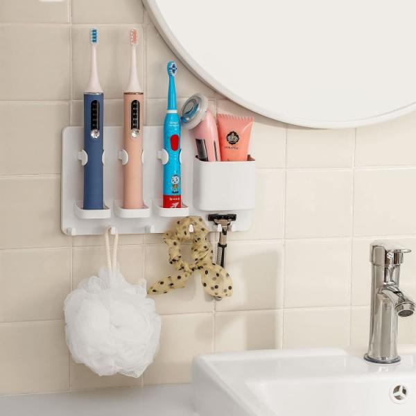Držák zubních kartáčků – 3 otvory pro elektrické zubní kartáčky, zubní pasty, odličovací vody nebo holicí strojky.