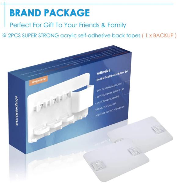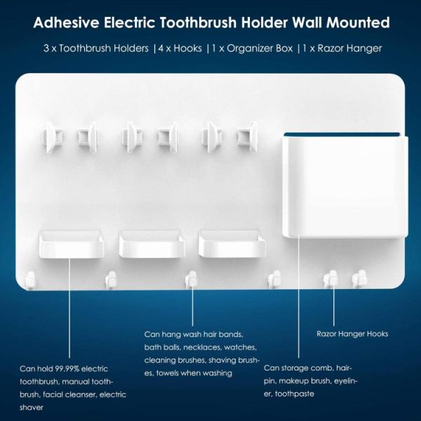 E-SHOPNástěnný, rodinný nastavitelný držák na elektrický zubní kartáček a další hygienické potřeby. Praktické umístní, jednoduchá instalace díky samolepící pásce. Vyrobeno z ABS plastu.