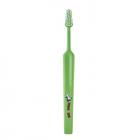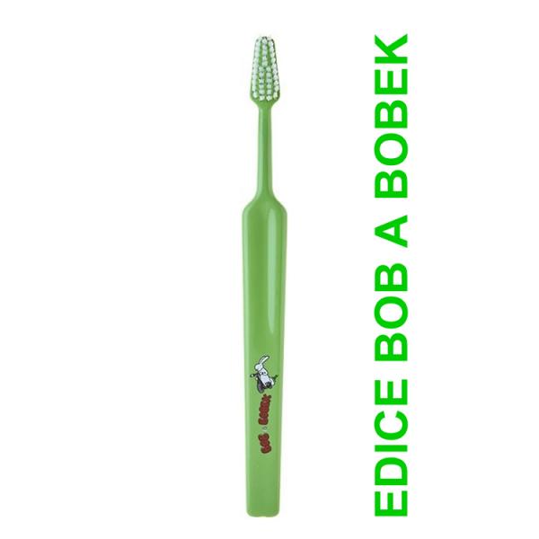 Extra měkký zubní kartáček s pohádkovými postavičkami Boba a Bobka. Malá zužující se hlavička je hustě osázená rovně zastřiženými svazky štětinek. Vynikající ergonomické držátko usnadňuje zejména dětem správné držení. Osvědčené i při čištění dětských zoubků dospělými. Krček kartáčku lze tvarovat podle individuálních potřeb. Stačí jej chvíli podržet pod horkou tekoucí vodou, vytvarovat a posléze ochladit ve studené vodě.