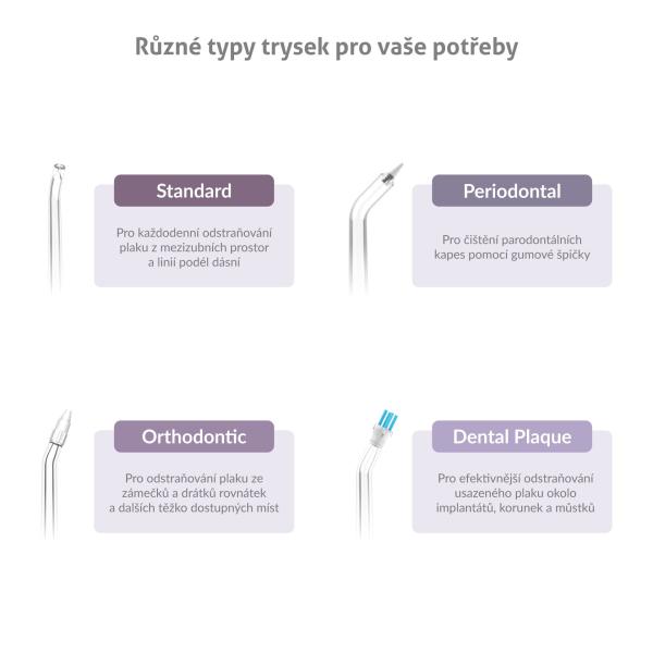 • Náhradní trysky C-series – 3× Standard, 1× Dental Plaque, 1× Orthodontic, 1× Periodontal