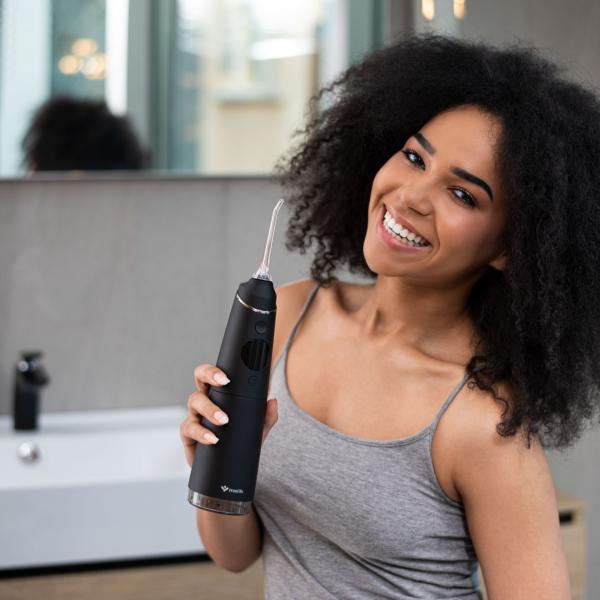 U AquaFloss Compact C300 máte na výběr z pěti čistících režimů, díky kterým si čištění zubů plně přizpůsobíte. Do nádržky o kapacitě 300 ml můžete kromě vody nalít i ústní vodu pro extra porci svěžesti a hygieny. Tryska sprchy je otočná o 360 stupňů a dostane se i do těch nejmenších mezizubních prostor, odkud odstraní až 99 % zubního plaku. Spolu se sonickým kartáčkem snižuje riziko vzniku zubního kazu i zánětu dásní a ušetří vás nepříjemných návštěv stomatologa i nečekaných výdajů.