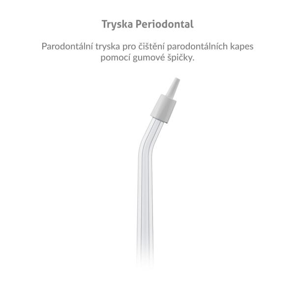 Periodontální tryska pro čištění parodontálních kapes pomocí gumového hrotu. 4 ks v balení kompatibilní s ústními sprchami L-series