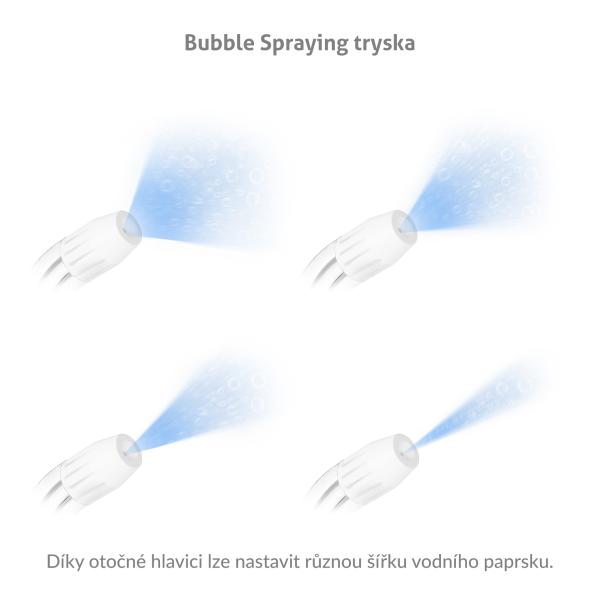 • Bubble Spraying – Slouží k?vyčištění celé plošky zubu, díky funkci rozprašovače. Vhodná také pro osoby s citlivými dásněmi a s?rovnátky.