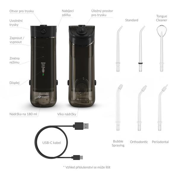 TrueLife AquaFloss Mini M50 Black cestovní sprcha mini černá