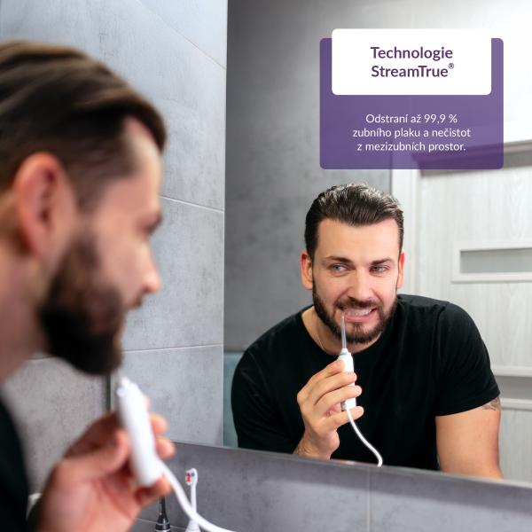 Ústní sprcha disponuje moderními technologiemi, jež podporují zdraví zubů a dásní. Technologie StreamTrue® vhání mikrobublinky vytvořené z vody a vzduchu pod vysokým tlakem do mezizubních prostor. Tím účinně odstraňuje až 99 % zubního plaku a veškerých nečistot z těžko dostupných míst. Technologie PulseTrue® při nastavení režimu Pulse vytváří pulsní vlny, které snižují a zvyšují intenzitu proudění vody, čímž dochází k masírování dásní, jejich prokrvení a regeneraci.