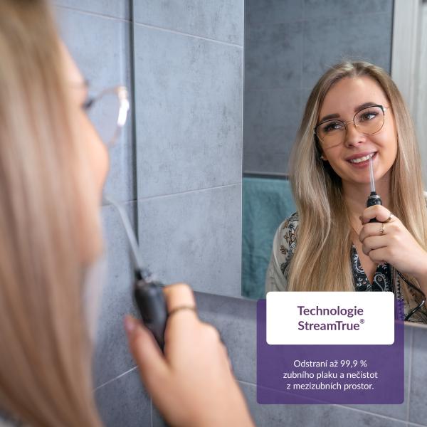 Ústní sprcha disponuje moderními technologiemi, jež podporují zdraví zubů a dásní. Technologie StreamTrue® vhání mikrobublinky vytvořené z vody a vzduchu pod vysokým tlakem do mezizubních prostor. Tím účinně odstraňuje až 99 % zubního plaku a veškerých nečistot z těžko dostupných míst. Technologie PulseTrue® při nastavení režimu Pulse vytváří pulsní vlny, které snižují a zvyšují intenzitu proudění vody, čímž dochází k masírování dásní, jejich prokrvení a regeneraci.