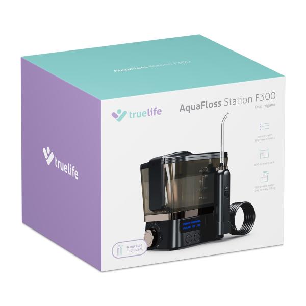 Dopřejte si kvalitní a pohodlnou dentální péči v pohodlí domova i na cestách. Ústní sprcha TrueLife AquaFloss Station F300 Black dokáže perfektně vyčistit hůře dostupné mezizubní prostory. Je vybavena integrovanou dobíjecí baterií, která na jedno nabití vydrží až 20 dní, což ji činí ideální pro použití nejen doma, ale i na cestách. Po použití ji celou jednoduše složíte do nádržky na vodu. Pro čištění, lze využít 3 režimy a u každého máte na výběr z 10 intenzit tlaku vody. 600 ml nádržku snadno odejmete a naplníte vodou. Sprcha je vybavena technologií StreamTrue® pro dokonalé odstranění plaku a nečistot a technologií PulseTrue® pro masáž dásní. Přehledný displej ukazuje aktuálně zvolené nastavení, funkce Paměť si zapamatuje poslední použitý režim, který po spuštění automaticky aktivuje. Díky časovači máte jistotu, že čištění probíhá doporučené 2 minuty. Šikovná je úschovna pro trysky nacházející se ve víku nádržky a hlavice otočná o 360°, s níž vyčistíte každé zákoutí úst.