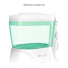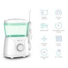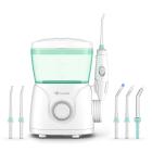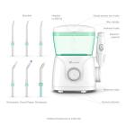Elektrická ústní sprcha se stanicí – 6 trysek (4 typy), nádržka 600 ml, 360° otočná hlavice, 10 intenzit tlaku vody, rozmezí 30-125 PSI, časovač, ovládání na rukojeti, napájení ze sítě, barva: bílá, zelená.