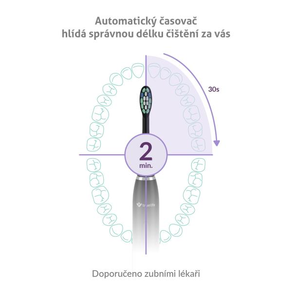 Sonický kartáček je nastaven, aby se automaticky vypnul po uplynutí ideální doby čištění, tedy 2 minutách.