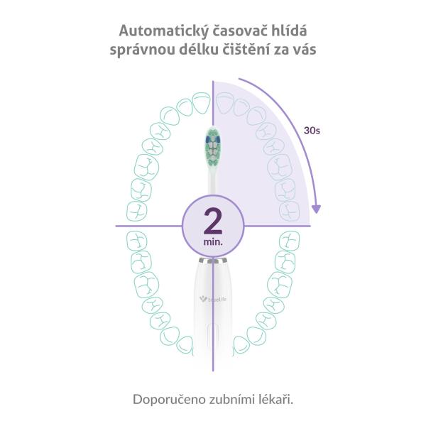 Ideální doba čištění je zohledněna v nastavení časovače, který po 2 minutách kartáček automaticky vypne.