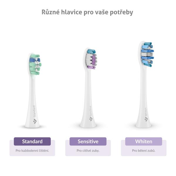 Balení obsahuje celkem 4 hlavice – 2x Standard a po jednom Sensitive a Whiten.