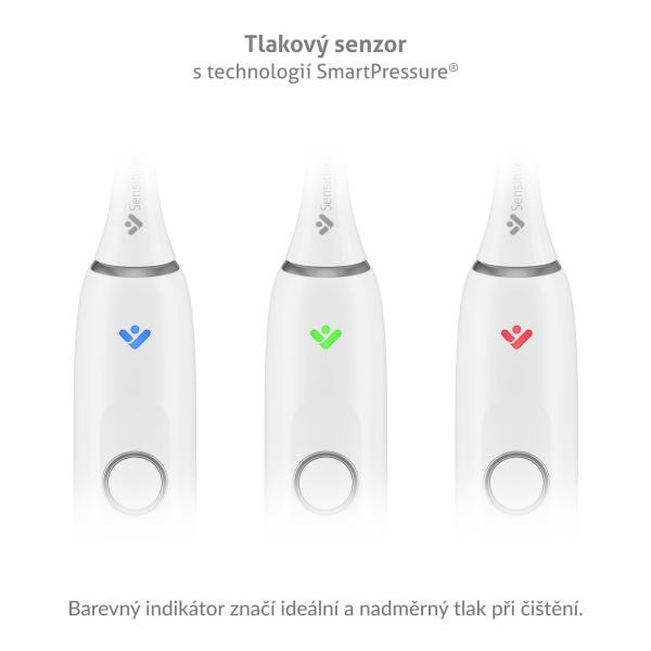 Aby přílišný tlak hlavice na zuby a dásně nezpůsobil zdravotní obtíže, je kartáček vybaven tlakovým senzorem, který míru tlaku rozezná a barevným indikátorem viditelným z přední i zadní strany upozorní, zda je třeba při čištění zvolnit.