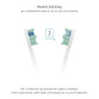 Balení sonického kartáčku zahrnuje 2 hlavice, které jsou určeny pro běžné každodenní čištění (Standard) a pro citlivé zuby (Sensitive). Dokoupit lze hlavici Whiten na bělení zubů.
