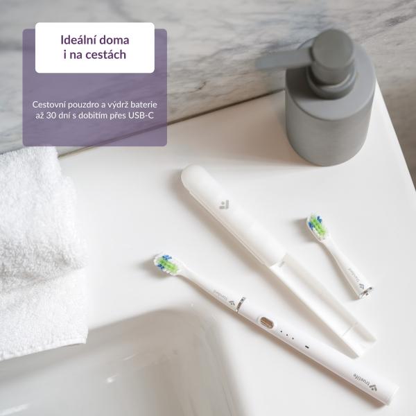 S technologií SonicTrue®, 70 000 pohybů za minutu, 3 režimy, časovač, 2 hlavice, cestovní pouzdro, vodotěsný, výdrž až 30 dnů na 1 nabití, USB-C kabel