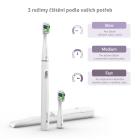 Sonický kartáček disponuje 3 režimy čištění. SLOW ocení lidé s citlivými zuby a dásněmi, MEDIUM je ideální na běžné čištění a odstranění zubního plaku, FAST odstraní i odolný zubní plak a bělí zuby.